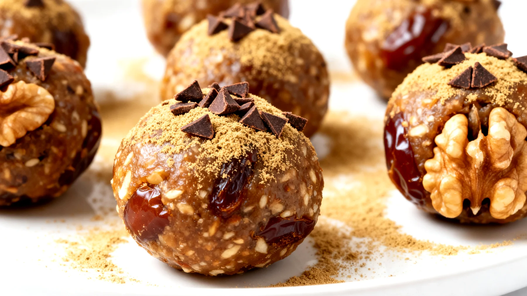 Hier wird es interessanter: Datteln bilden die süße Basis dieser Energiebällchen und sind tatsächlich mehr als nur natürliche Süßungsmittel. Getrocknete Datteln enthalten die Aminosäure Tryptophan sowie B-Vitamine. Tryptophan ist eine Vorstufe des Schlafhormons Melatonin und kann die körpereigene Produktion dieses wichtigen Botenstoffs unterstützen. Dies ist durch Ernährungsexperten dokumentiert.