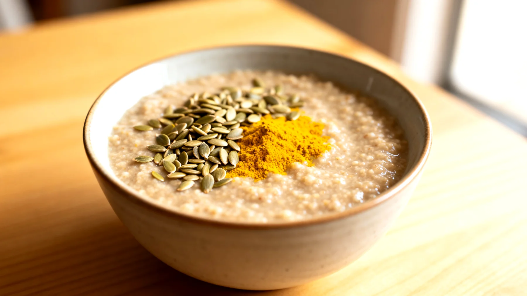 Das Ergebnis sollte eine cremige, leicht körnige Konsistenz haben – ähnlich wie Grießbrei, aber mit mehr Biss. Nach dem Kochen kommen zwei Esslöffel geschälte Hanfsamen hinzu, zusammen mit einem halben Teelöffel Kurkuma und einer großzügigen Prise schwarzem Pfeffer. Wer mag, kann das Porridge bereits während des Kochens mit etwas Vanille, Zimt oder einer Prise Salz verfeinern. Das verstärkt den Geschmack und macht das Frühstück noch aromatischer.